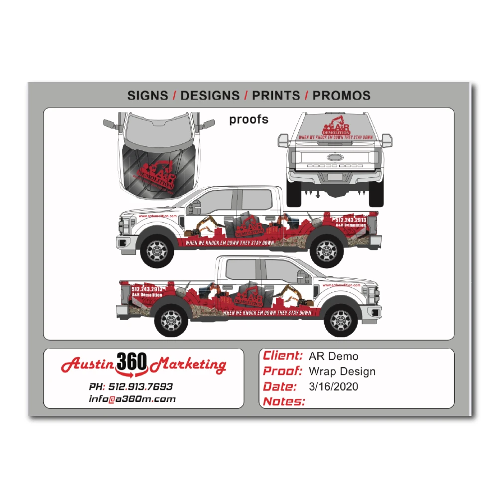Austin 360 Marketing delivers high-impact design, print, and branding solutions for businesses across Austin and Central Texas. Our portfolio highlights real client projects — from bold vehicle wraps to custom apparel, signage, promotional products, and full web design. Every project is built with precision, creativity, and results in mind.